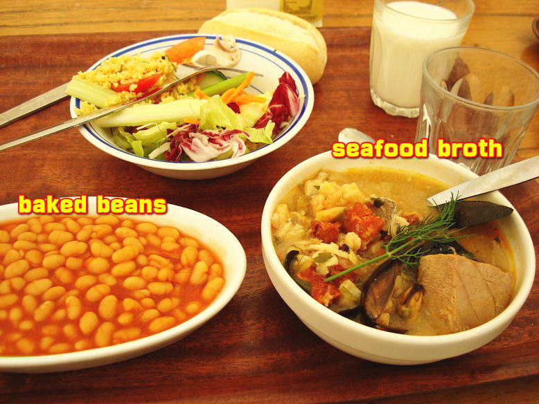 ベイクトビーンズ、大好きなのです。こんなに大盛でなくていいのですが、学食では「少し」と頼むと、オレの給仕に文句あんのかとばかりどかっと来ます。